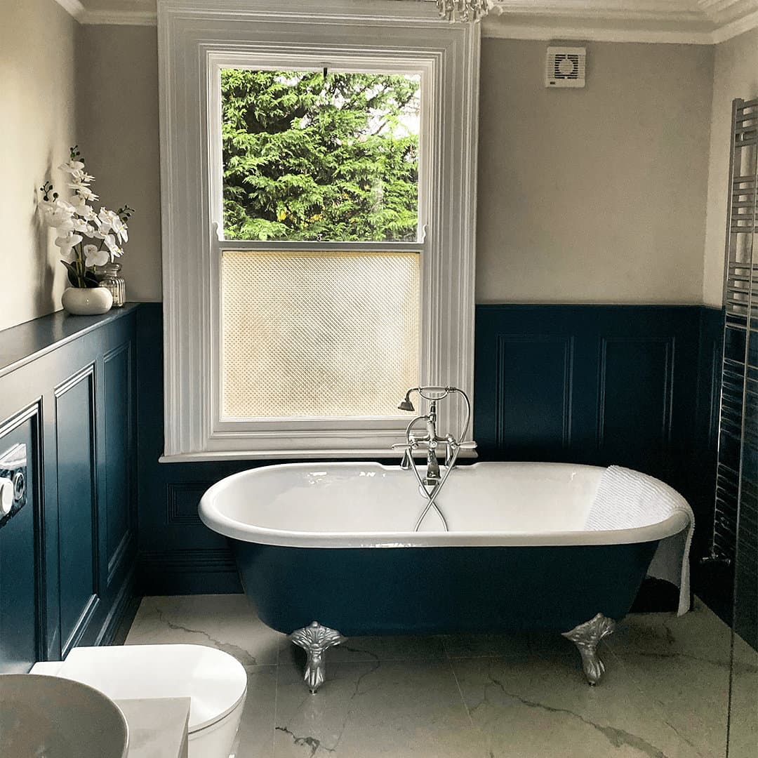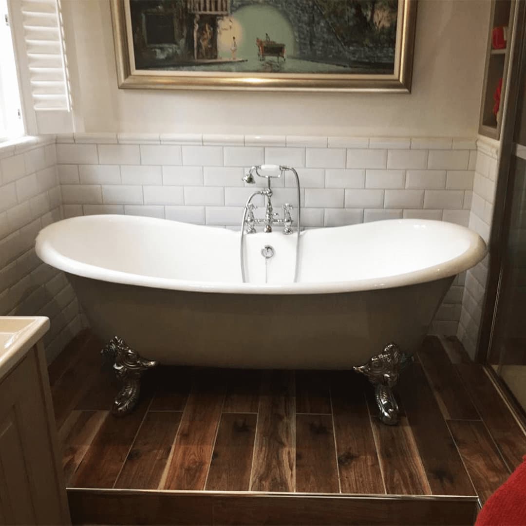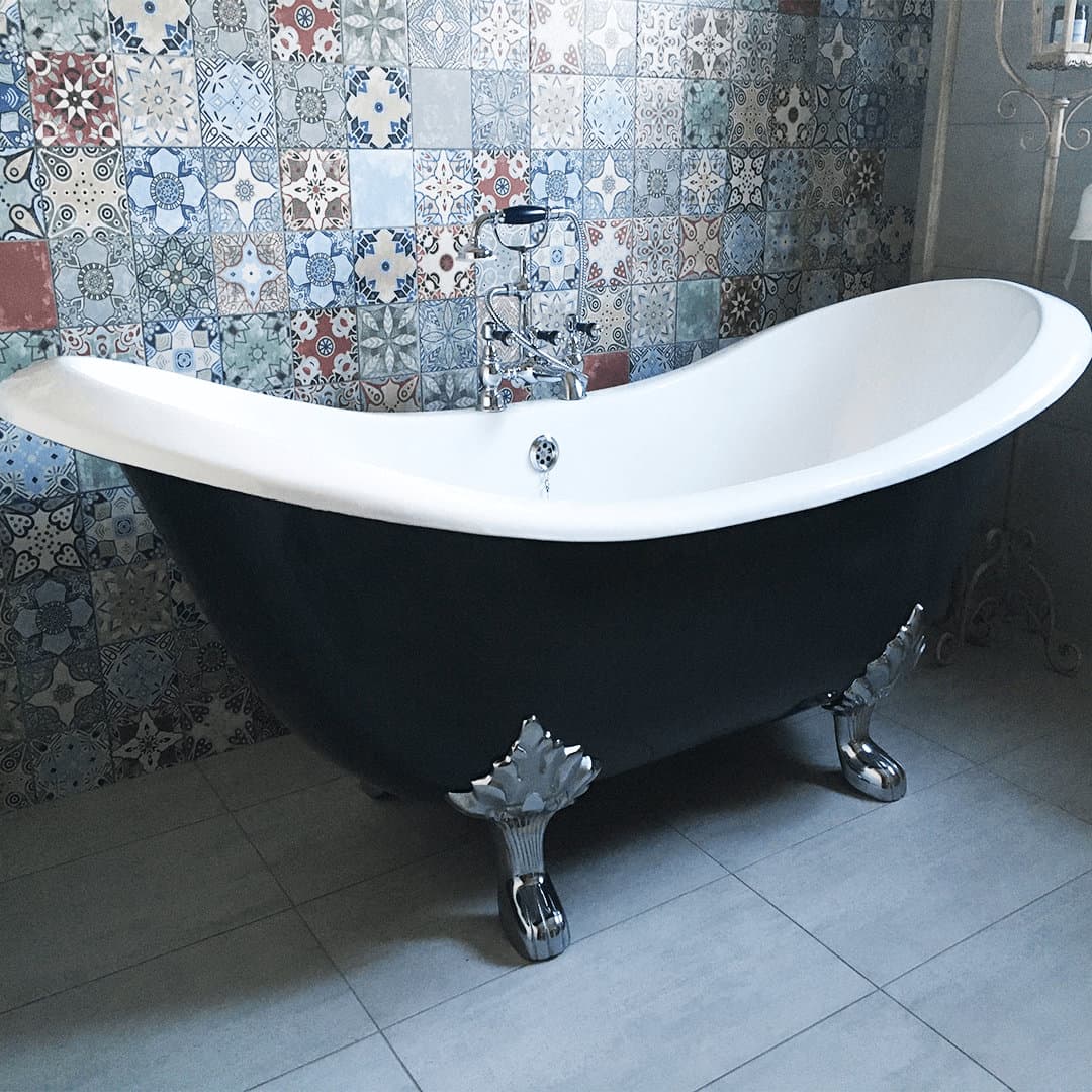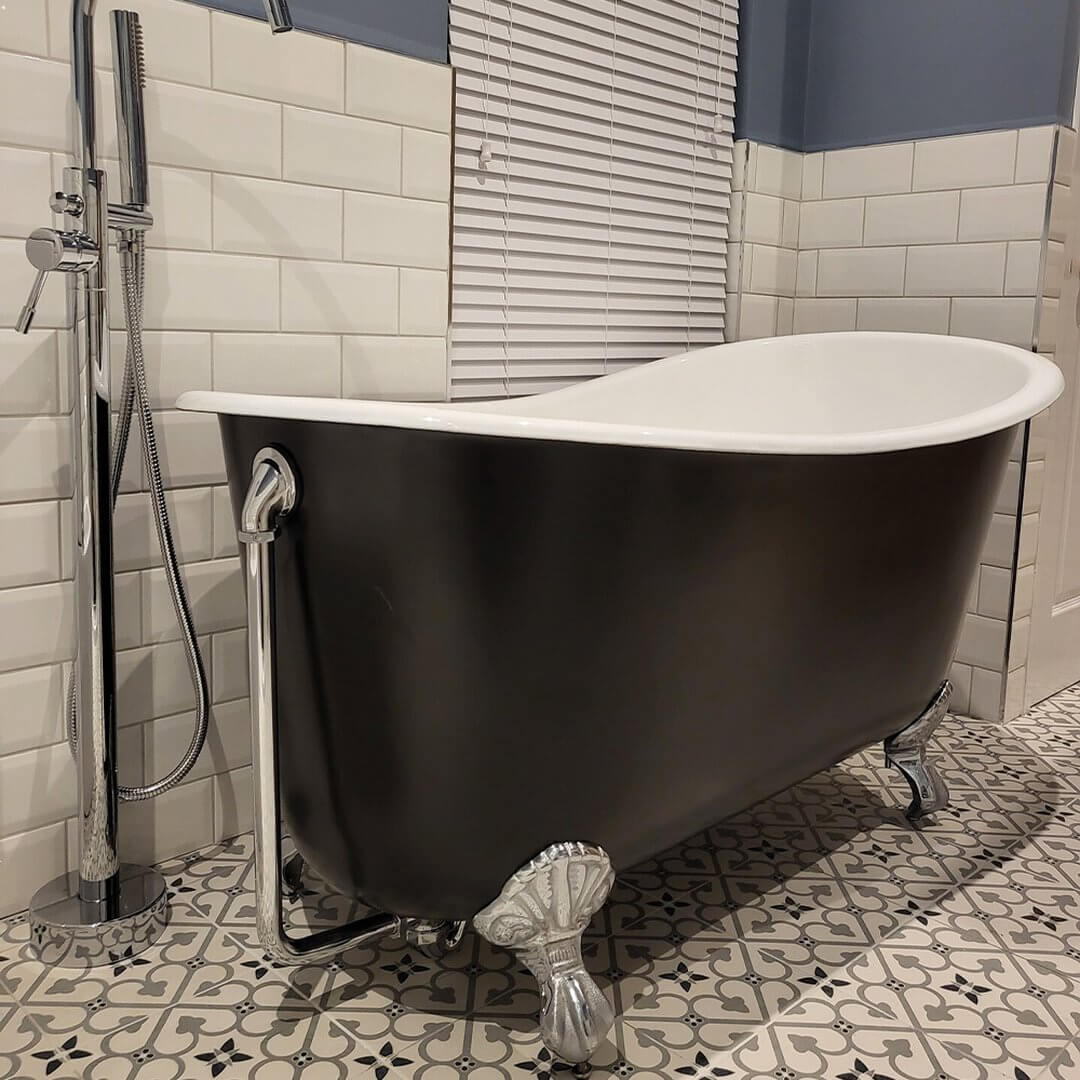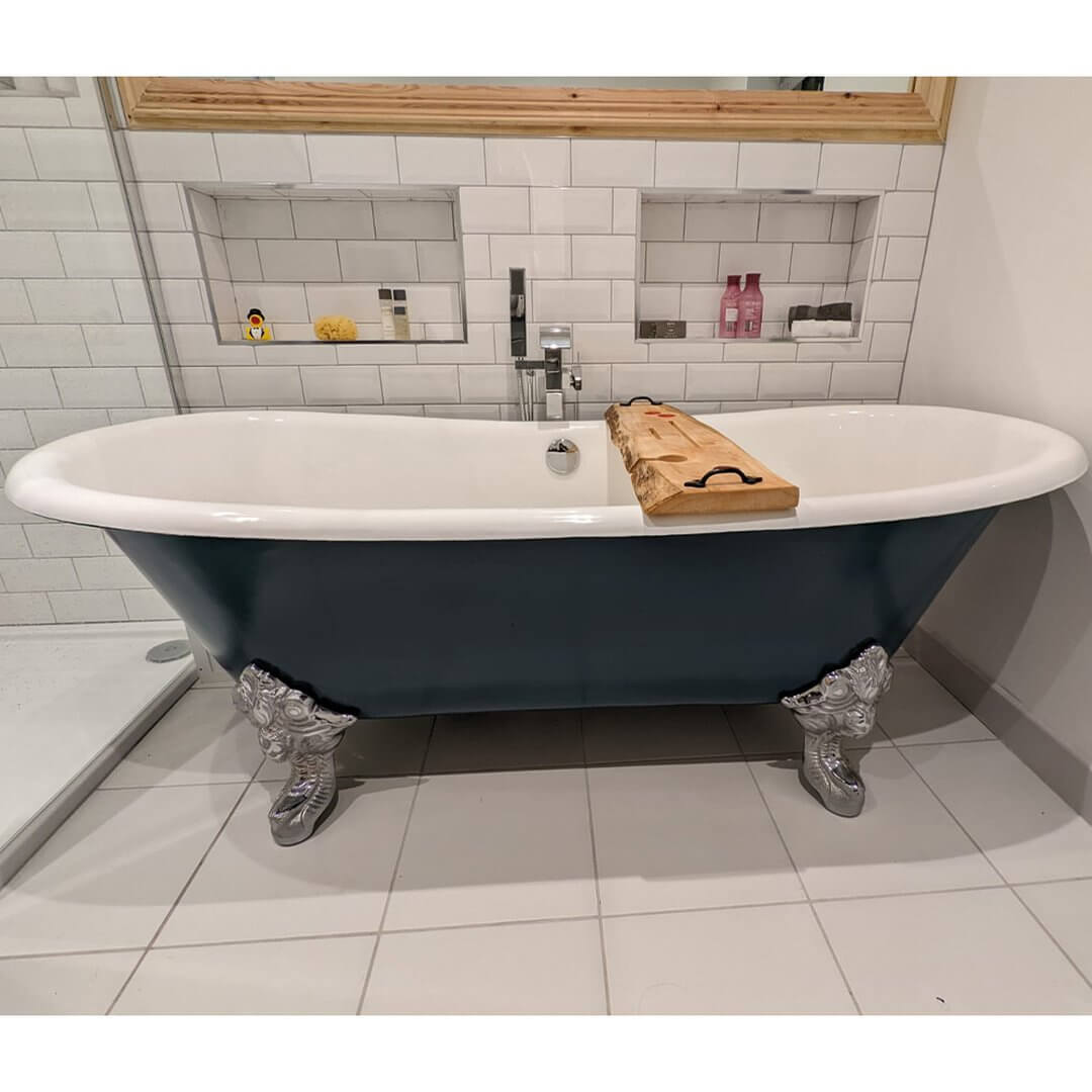 All of our cast iron baths can be painted with a bespoke finish , which allows you flexibility in design. The standard finish is white primer exterior with polished chrome feet. Discuss your requirements with our retailers today!